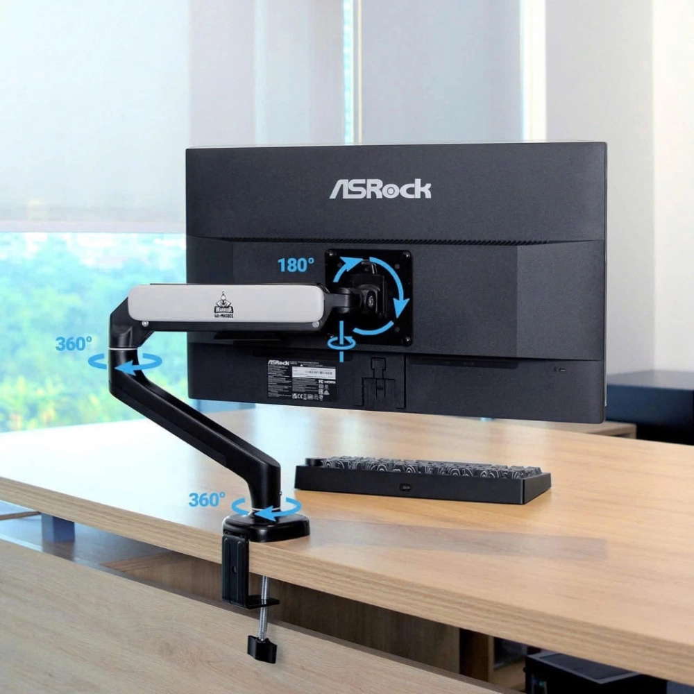 Arm được thiết kế để dễ dàng điều chỉnh nhiều góc độ: góc swivel lên đến 70 độ và xoay ngang 180 độ, cho phép người dùng điều chỉnh độ cao, độ nghiêng, và hướng của màn hình chỉ trong vài giây. Điều này không chỉ giúp bạn chọn được tư thế ngồi chuẩn công thái học mà còn hỗ trợ chia sẻ nội dung nhanh chóng với đồng nghiệp hoặc khách hàng khi làm việc nhóm.