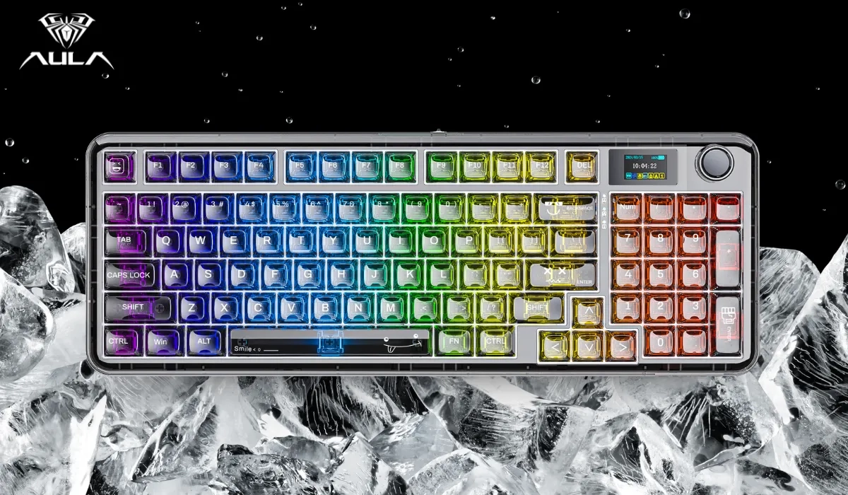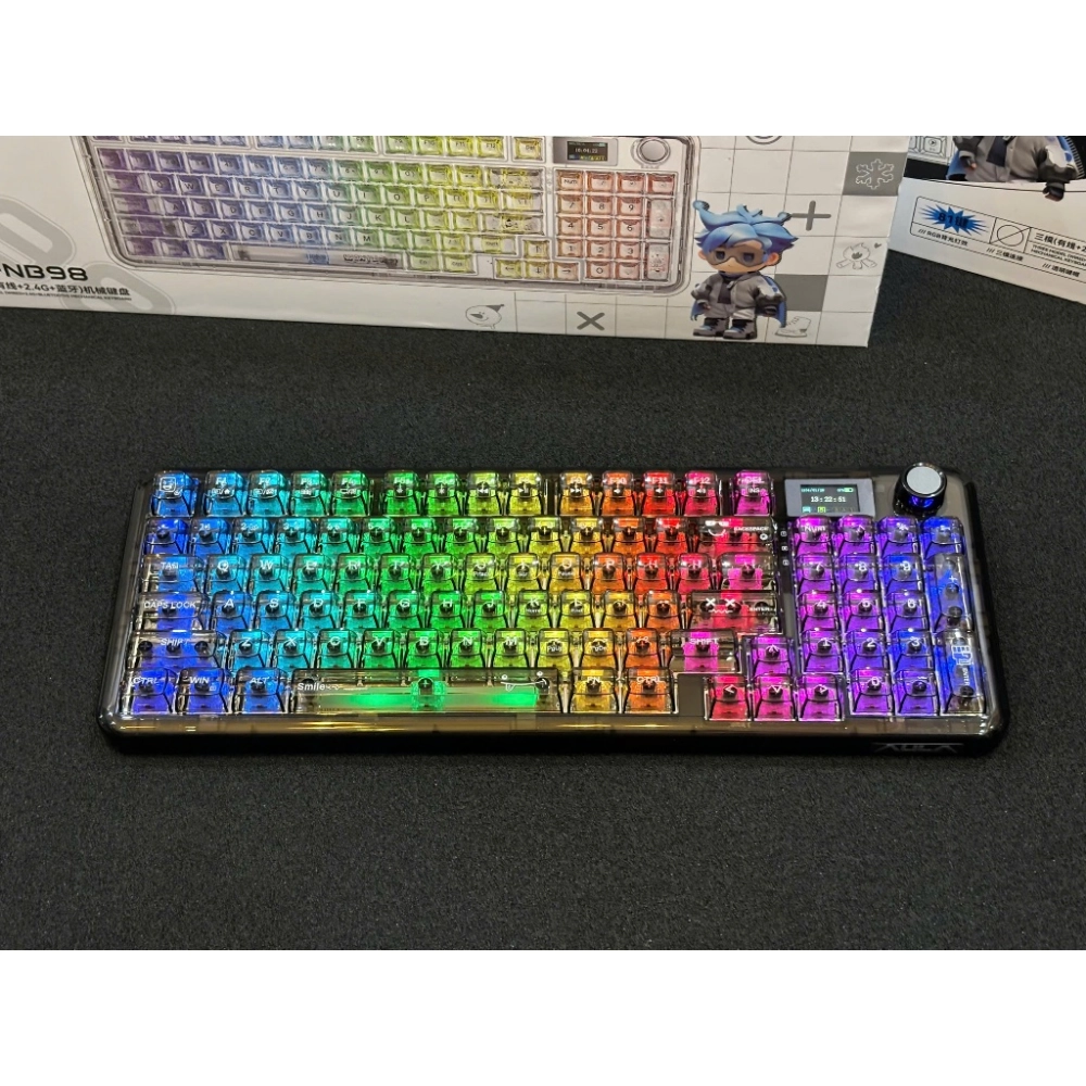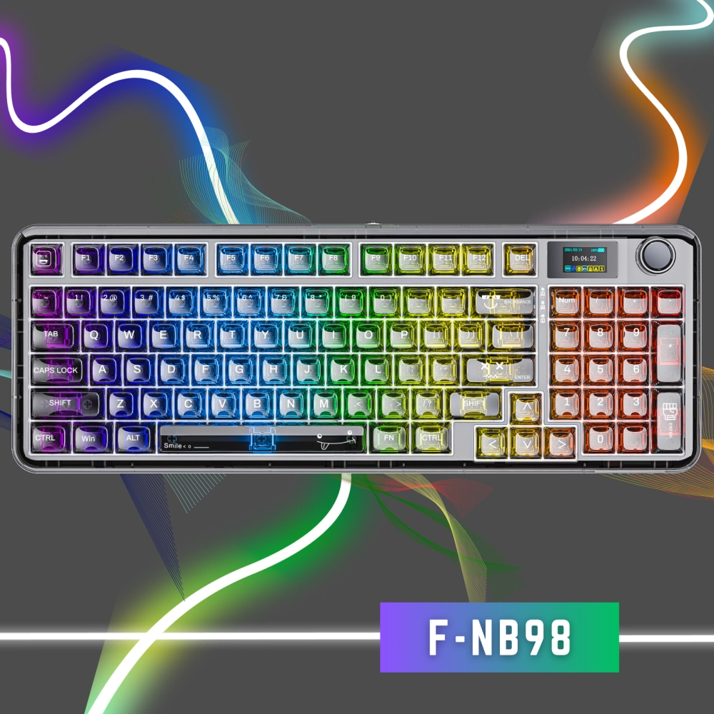 Aula F-NB98 sở hữu keycap làm từ nhựa PC trong suốt, mang lại cảm giác gõ mượt mà và độ bền vượt trội, với tuổi thọ lên đến 60 triệu lần bấm. Thiết kế 94 phím tối ưu cho không gian làm việc và chơi game, kết hợp mạch ngược và gasket mount giúp thao tác êm ái, giảm tiếng ồn đáng kể. Núm xoay đa chức năng và màn hình LCD 1,14 inch hiển thị thông tin và hình ảnh giúp người dùng kiểm soát bàn phím dễ dàng.