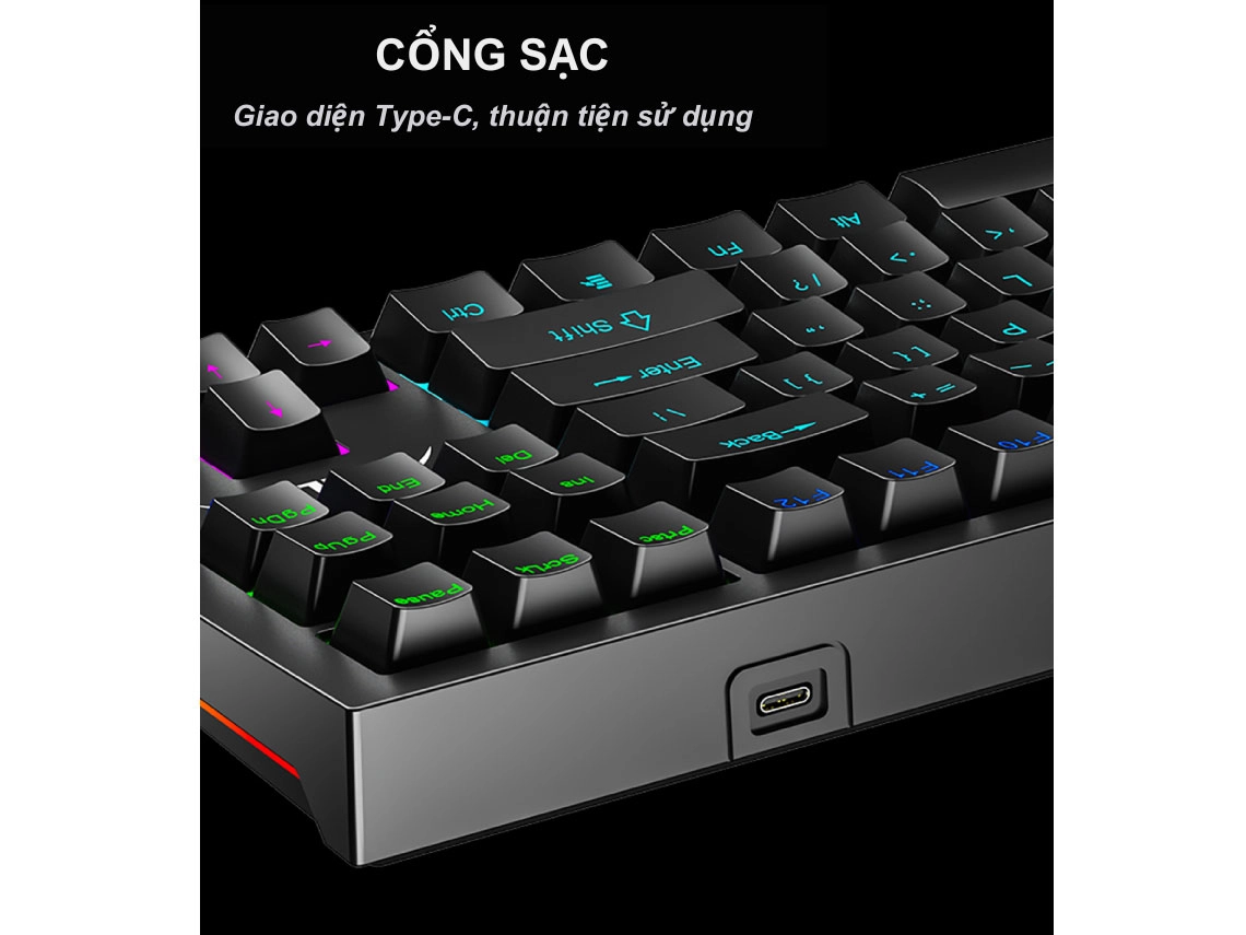 Bàn phím được tích hợp hệ thống LED RGB với nhiều hiệu ứng ánh sáng đẹp mắt, giúp góc làm việc hoặc góc chơi game thêm phần nổi bật. Người dùng có thể tùy chỉnh các chế độ ánh sáng thông qua tổ hợp phím chức năng, dễ dàng điều chỉnh theo sở thích.