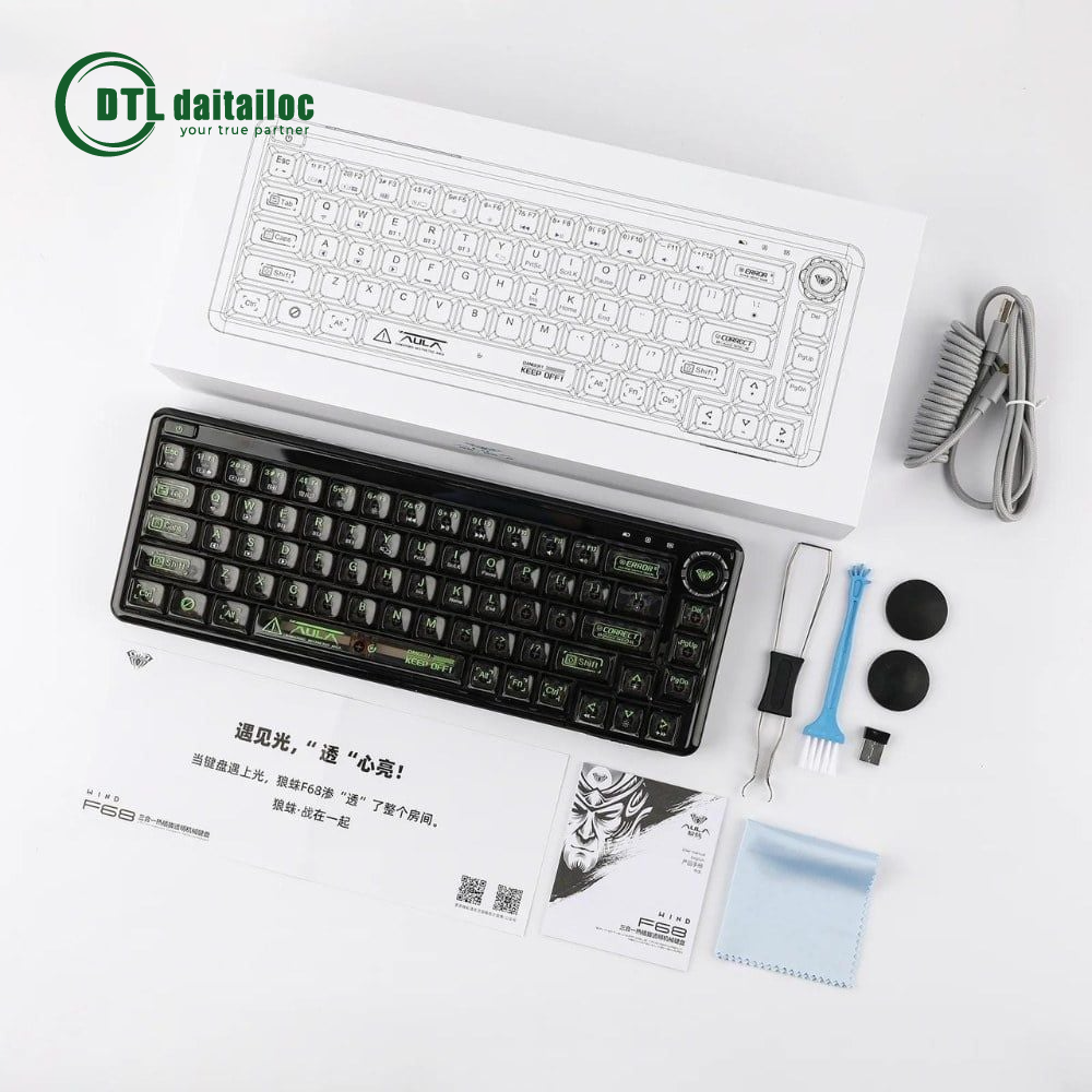 - Phụ kiện kèm theo: Sách hướng dẫn sử dụng + Dây USB type-C + Dụng cụ thay keycap và switch 2 trong 1 + bộ khăn lau và chổi vệ sinh bàn phím