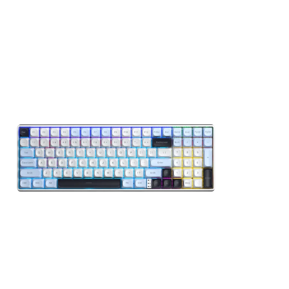 Sản phẩm sở hữu hệ thống đèn nền LED Rainbow rực rỡ, hỗ trợ nhiều hiệu ứng ánh sáng đẹp mắt để bạn tuỳ chỉnh theo phong cách cá nhân. Với layout 99 phím, bàn phím vẫn đảm bảo đầy đủ chức năng như dãy phím số, phím mũi tên, cụm điều hướng mà không quá cồng kềnh – rất phù hợp cho không gian làm việc gọn gàng.