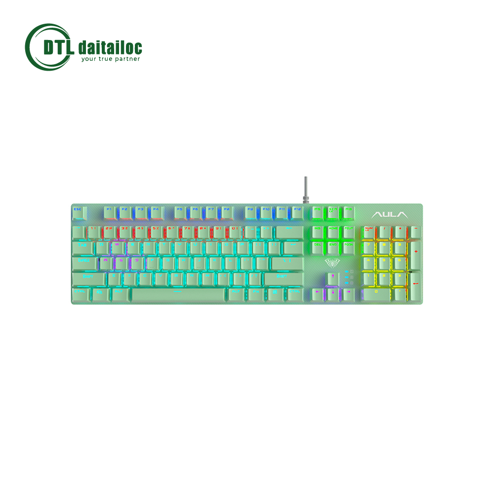 Aula S2022 nổi bật với thiết kế sắc nét, mang tone màu đen chủ đạo, tạo nên cảm giác mạnh mẽ và cá tính. Đèn nền LED Rainbow 7 màu được bố trí khéo léo dưới mỗi phím, không chỉ tăng tính thẩm mỹ mà còn giúp game thủ dễ dàng thao tác trong điều kiện ánh sáng yếu. Điểm đặc biệt chính là khả năng đổi màu linh hoạt theo hiệu ứng âm thanh, mang lại trải nghiệm thị giác sinh động theo từng nhịp gõ.
