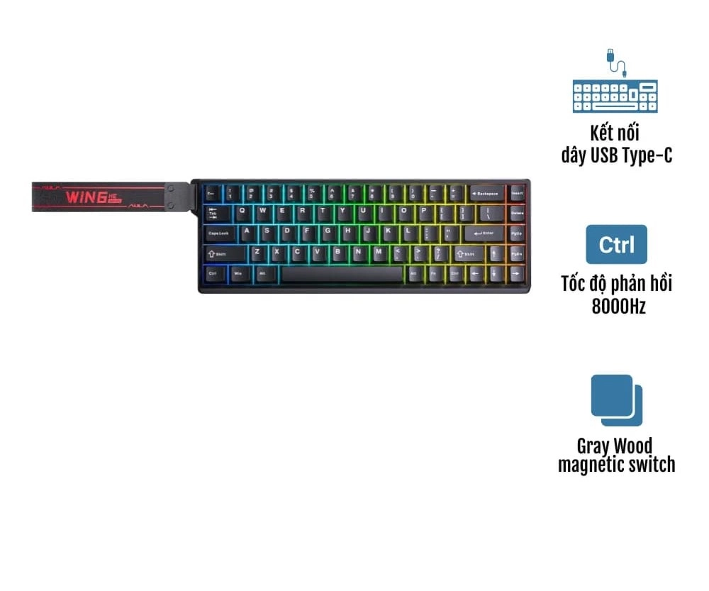 Trang bị Gray Wood magnetic switch với cơ chế Linear, bàn phím cho cảm giác gõ mượt mà và ổn định. Tần số phản hồi 8000Hz và tần số quét phím 4000Hz mang đến khả năng xử lý nhanh chóng, phù hợp cho các tựa game đòi hỏi tốc độ. Người dùng còn có thể tùy chỉnh điểm nhận phím từ 0.08mm đến 3.4mm với độ chính xác 0.02mm, đáp ứng đa dạng phong cách chơi. Độ bền phím đạt 60 triệu lần bấm, đảm bảo độ tin cậy lâu dài.