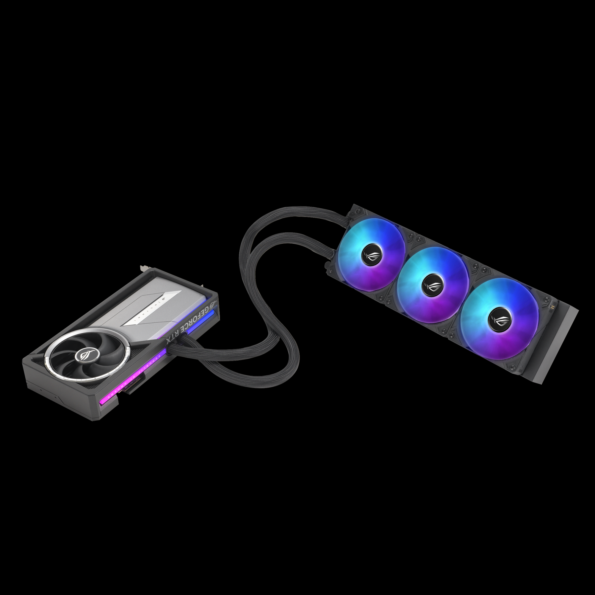ROG Astral LC được trang bị hệ thống làm mát chất lỏng tích hợp. Giúp duy trì nhiệt độ hoạt động ổn định ngay cả khi GPU hoạt động ở hiệu suất cao. Hệ thống này bao gồm một bộ tản nhiệt 240mm với hai quạt hiệu suất cao, đảm bảo luồng không khí và giảm tiếng ồn. Thiết kế này không chỉ tăng cường hiệu suất làm mát mà còn kéo dài tuổi thọ của card đồ họa.
