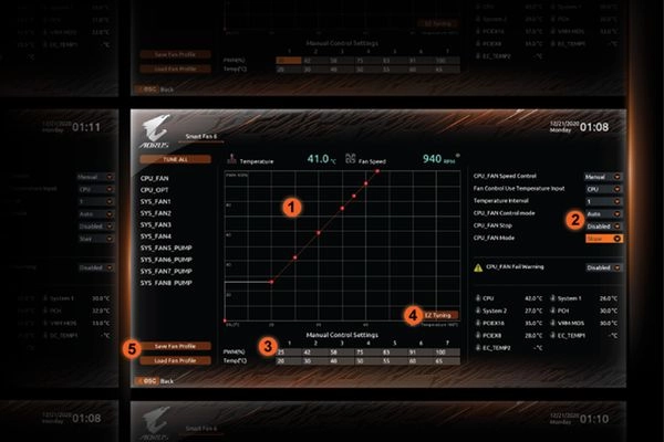 Smart Fan 6 chứa một số tính năng làm mát độc đáo đảm bảo PC chơi game duy trì hiệu suất của nó trong khi vẫn mát và yên tĩnh. Nhiều đầu cắm quạt có thể hỗ trợ bơm và quạt PWM/DC, đồng thời người dùng có thể dễ dàng xác định từng đường cong của quạt dựa trên các cảm biến nhiệt độ khác nhau trên bo mạch thông qua giao diện người dùng trực quan.