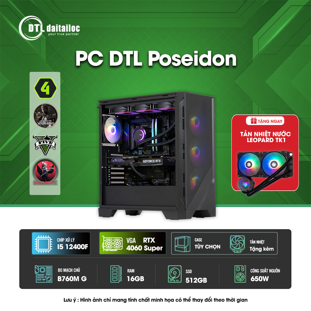 PC DTL Poseidon i5-12400F | RTX 4070 Super có hiệu suất mạnh mẽ.