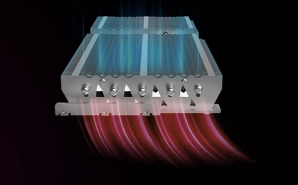 Nhiệt lượng từ GPU và module bộ nhớ ngay lập tức truyền sang tấm nền bằng đồng mạ nickel vững chắc và nhanh chóng truyền sang cho dãy các ống dẫn nhiệt từ nhân. Phương thức này mở rộng hệ thống truyền nhiệt với cơ chế hiệu suất cao hơn tăng cường hiệu suất tổng thể.
