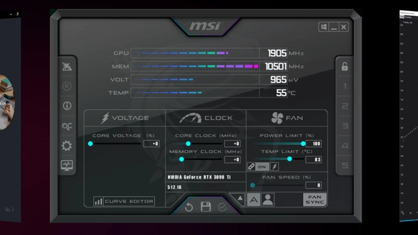 MSI Afterburner là phần mềm được nhận biết và sử dụng nhiều nhất cho ép xung card đồ hoạ trên thế giới. Chiếm quyền điều khiển hoàn toàn card đồ hoạ trong khi theo dõi các thông số quan trọng theo thời gian thực. Chương trình này miễn phí và tương thích với cả các card màn hình của các nhà sản xuất khác.